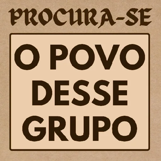 Un anuncio con texto 'PROCURA-SE O POVO DESSE GRUPO' en letras grandes y marrones en un fondo beige.