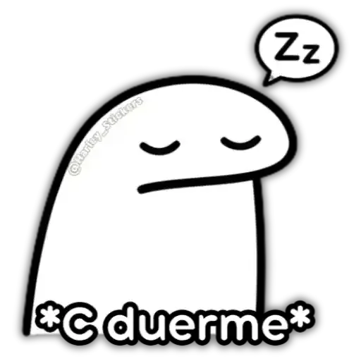 Un personaje de dibujo animado con los ojos cerrados y una burbuja de diálogo 'Zz' indica que está durmiendo. Debajo de él, se lee '*C duerme*'.