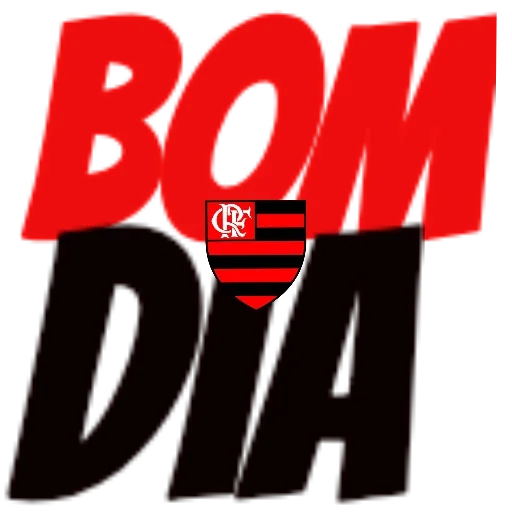 Un sticker con las palabras 'BOM DIA' en letras grandes, con el escudo de Flamengo en el medio.