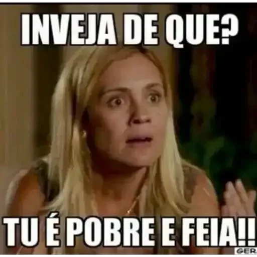 Uma mulher loira com expressão de surpresa e indignação, fazendo gestos com as mãos. O texto 'Não se mete cmg eu sou…