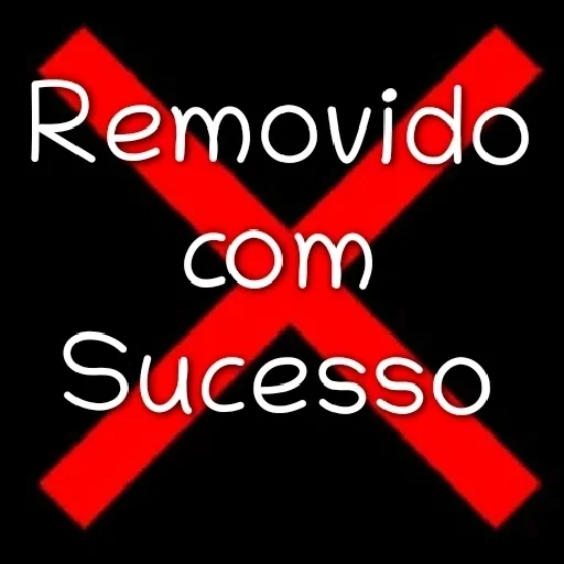 Una gran X roja con el texto 'Removido com Sucesso' en blanco sobre un fondo negro.