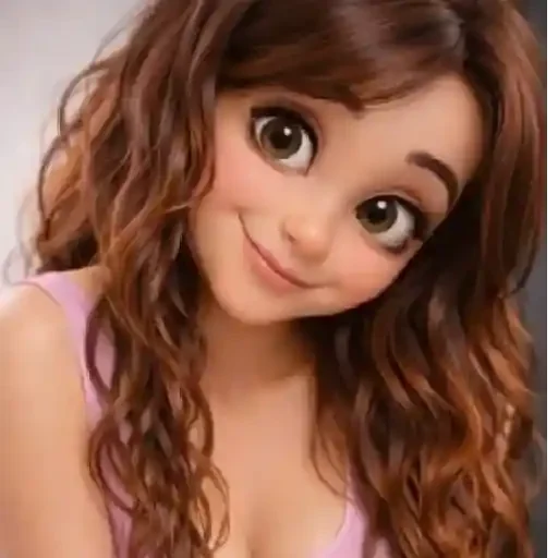 Una joven mujer con cabello castaño ondulado y ojos castaños grandes y expresivos, vestida con una blusa rosa, con una ligera sonrisa en el rostro.