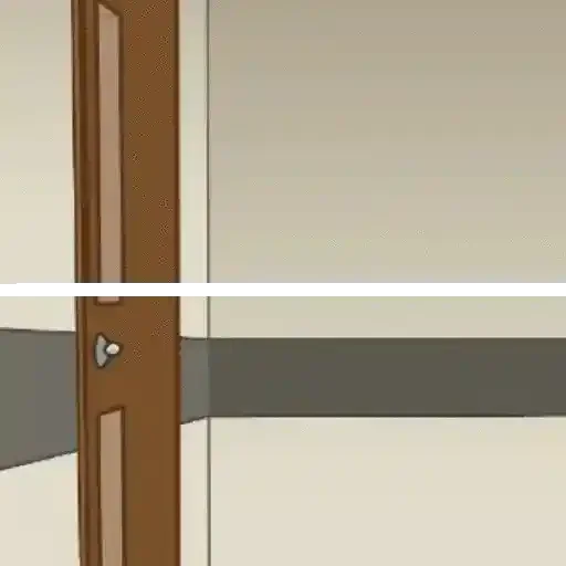 Una puerta marrón con un pomo de metal y una franja gris en el medio.