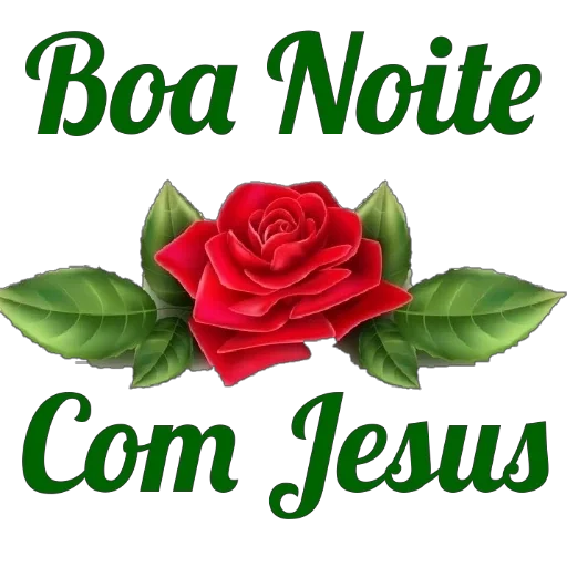 Una rosa roja con hojas verdes y el texto 'Boa Noite Com Jesus' en verde.