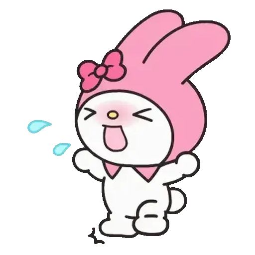 Un personaje de dibujo animado con un sombrero rosa y un lazo, con la boca abierta y sudor.