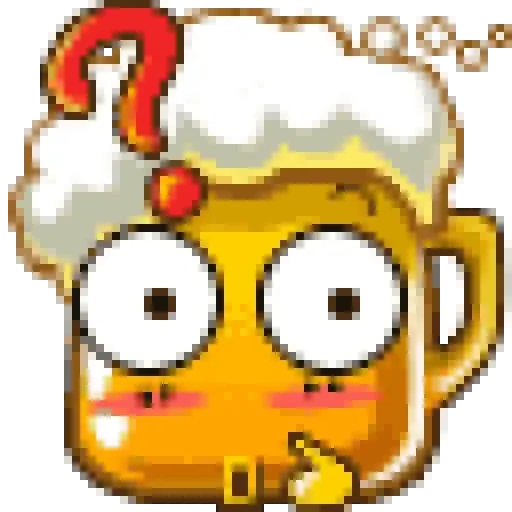Un vaso de cerveza con espuma y un signo de interrogación rojo en la cabeza, pareciendo confundido o pensativo.