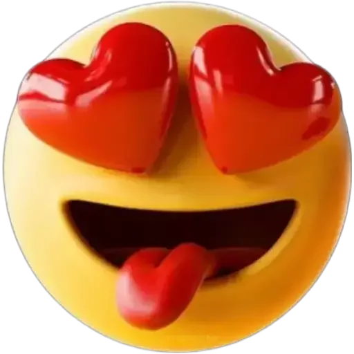 Un emoji amarillo con ojos en forma de corazón rojo y lengua roja fuera.