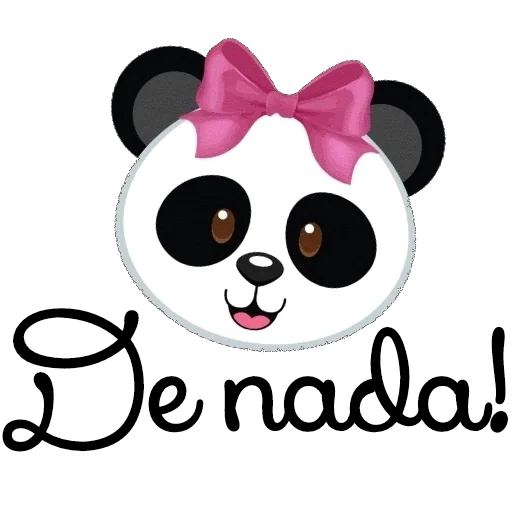 Un panda adorable con un lazo rosa en la cabeza y una expresión feliz, con el texto 'De nada!' debajo.