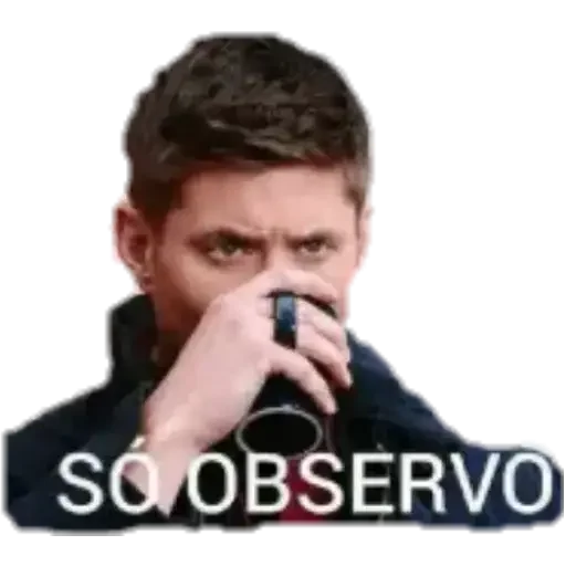 Homem de cabelos castanhos, com um blazer preto e camisa branca, bebendo de um copo de martini. A legenda 'SÓ OBSERVO'…
