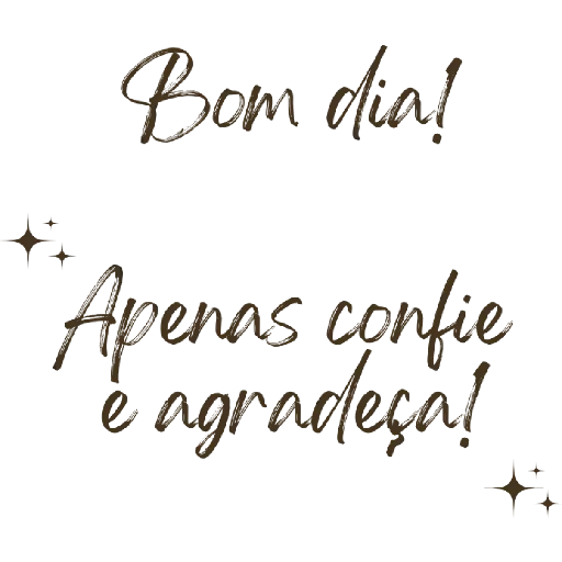 Un fondo negro con texto dorado: 'Bom dia!' en la parte superior y 'Apenas confie e agradeça!' abajo, con pequeñas estrellas doradas en las esquinas.