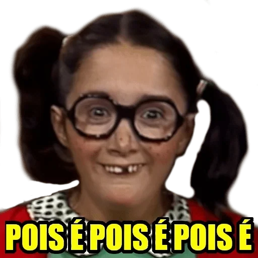Niña con gafas y brackets sonriendo, con texto "POIS É POIS É POIS É" destacado.