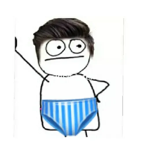 Un dibujo de un hombre con expresión de sorpresa o confusión, usando ropa interior azul y blanca a rayas, con un brazo levantado.