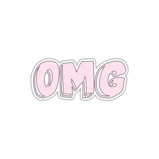 Letras grandes rosa con contorno gris que forman la expresión 'OMG'