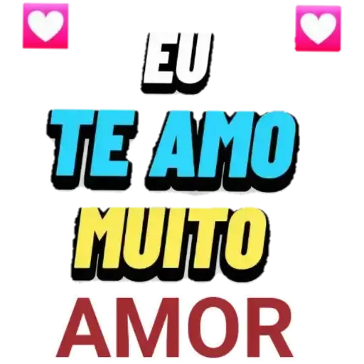 Un corazón rosa en cada esquina, con el texto 'EU TE AMO MUITO AMOR' en letras grandes y coloridas.