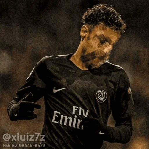 Jugador de fútbol con camiseta negra y texto 'Fly Emir' en blanco, cabello corto y rizado.