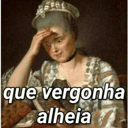 Una mujer con expresión de vergüenza o embarazo, con la mano en la frente. La imagen incluye el texto 'que vergonha alheia'.