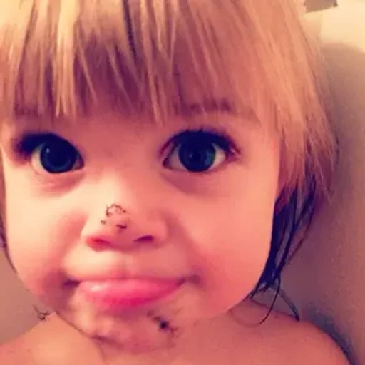 Rostro de un niño con flequillo y un pequeño golpe en la nariz y el labio.