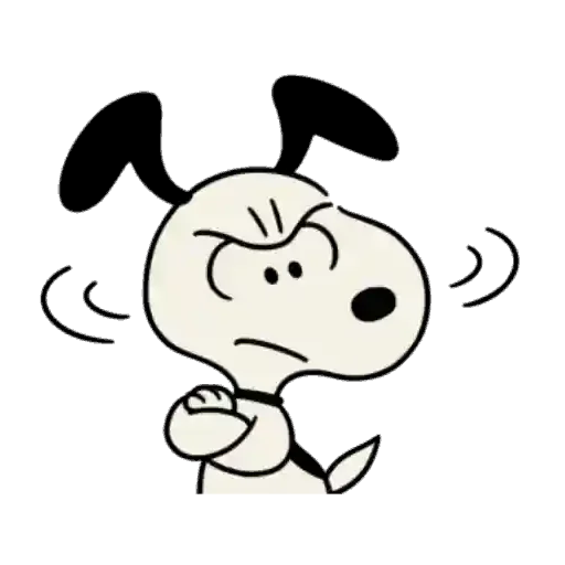 Un perro de dibujo animado con orejas negras y una expresión de confusión o preocupación, con líneas curvas alrededor que indican movimiento o calor.