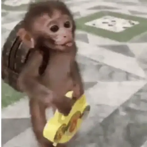 Un mono marrón tierno sosteniendo un objeto amarillo.