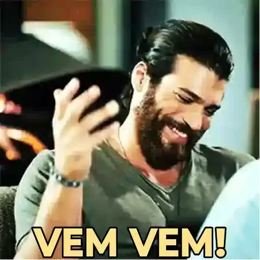Homem com cabelo preto e barba, vestindo uma camisa preta, com expressão séria e o texto 'Lá vem ela' sobreposto.