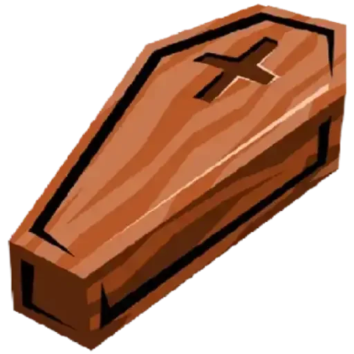 Un ataúd de madera marrón con un crucifijo negro en la parte superior.