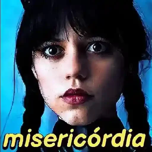 Uma imagem da personagem Wednesday Addams com uma expressão séria e o texto 'RECONHEÇO SUA TENTATIVA' em letras…