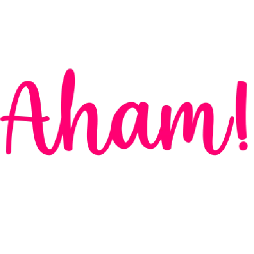 La palabra 'Aham!' en rosa, escrita de forma cursiva.