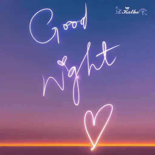 Una noche con 'Good Night' escrito en cursiva con un corazón, contra un atardecer colorido.