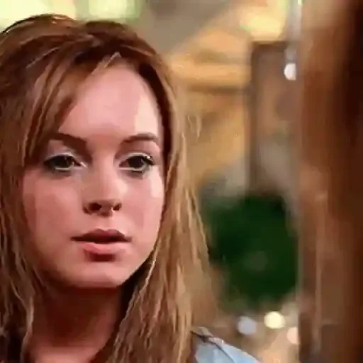Uma jovem com cabelos castanhos e expressão de desinteresse ou tédio, vestindo uma blusa roxa.