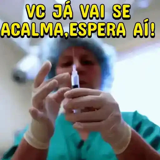 Un profesional de la salud, probablemente un médico o enfermero, con equipo de protección, sostiene una jeringa mientras dice '¡Ya te vas a calmar, espera ahí!'