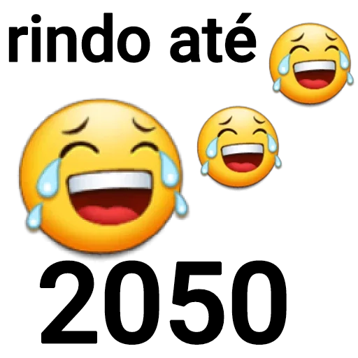Tres emojis de cara de alegría con lágrimas, con texto 'rindo até 2050'