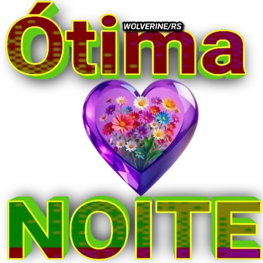 Un corazón púrpura con flores coloridas dentro, con las palabras 'Ótima Noite' en letras grandes y coloridas.
