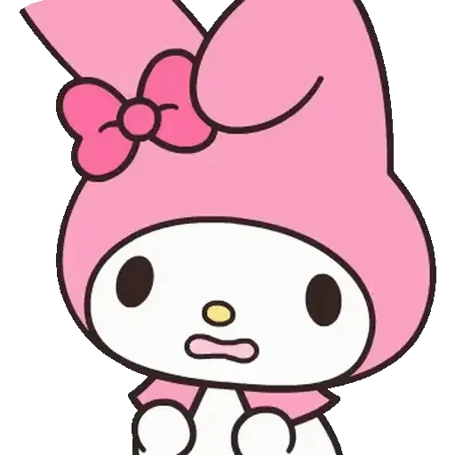 Um personagem de desenho animado com um chapéu rosa e um laço, com a boca aberta e suor.