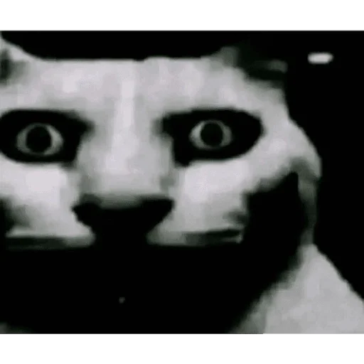 Gato com olhos arregalados em uma imagem escura e de baixa qualidade, possivelmente à noite.
