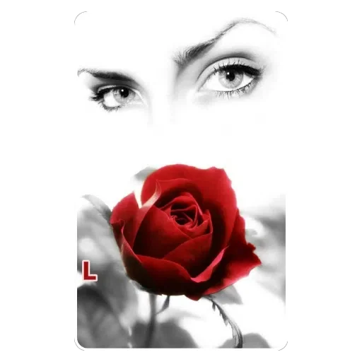 Rosto de mulher com lábios vermelhos e cabelo escuro, com flores vermelhas ao lado.