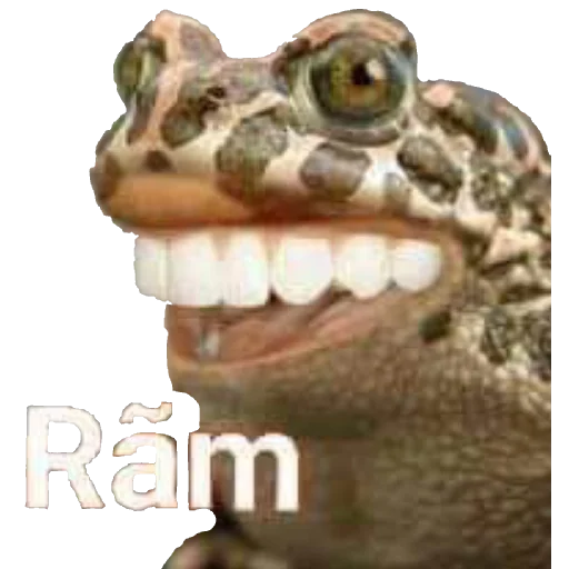 Un lagarto sonriente con dientes blancos, con la palabra 'Räm' escrita debajo.