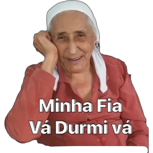 Uma mulher idosa com expressão séria e o dedo indicador na boca, com o texto 'VAI LÊ UMA BRIBIA MININO!' em letras…