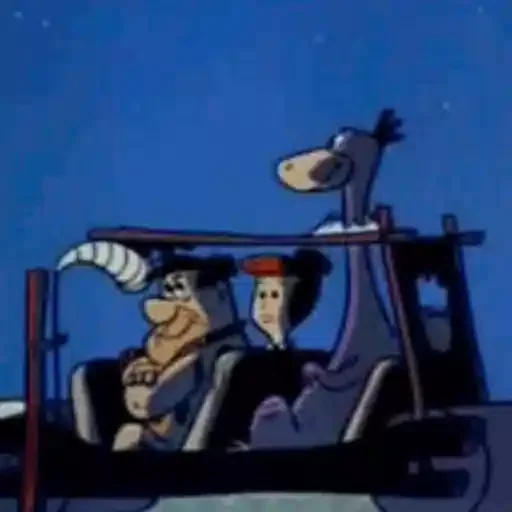 Personagem Fred Flintstone em uma estrutura de madeira com uma tela branca, parecendo uma cama, com rolos de papel…
