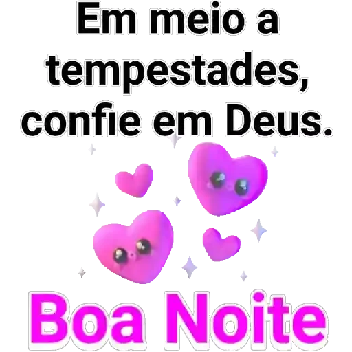 Corazones rosados con ojos y texto 'Em meio a tempestades, confie em Deus. Boa Noite'.