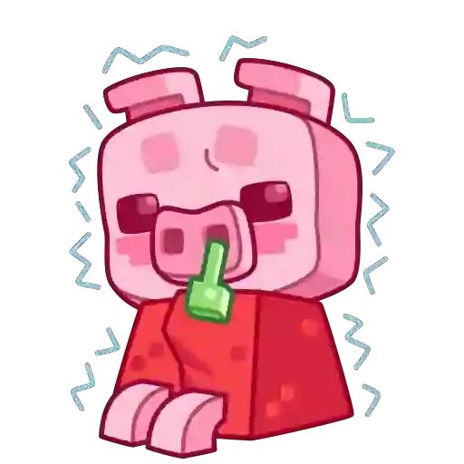 Cerdo rosa con expresión de sorpresa o impacto, dedo índice en la boca y líneas azules alrededor de la cabeza.