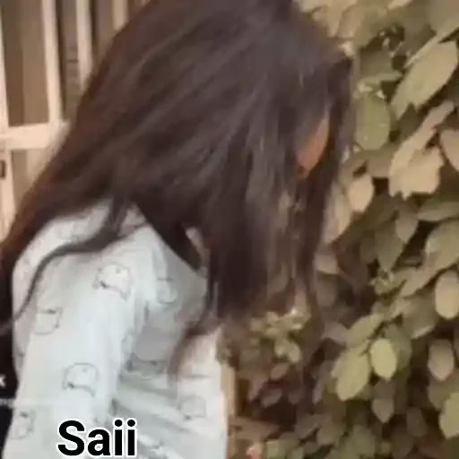 Una joven con cabello castaño largo y una camisa blanca mirando hacia abajo cerca de una planta. La palabra 'Saii' está escrita en la esquina inferior izquierda.