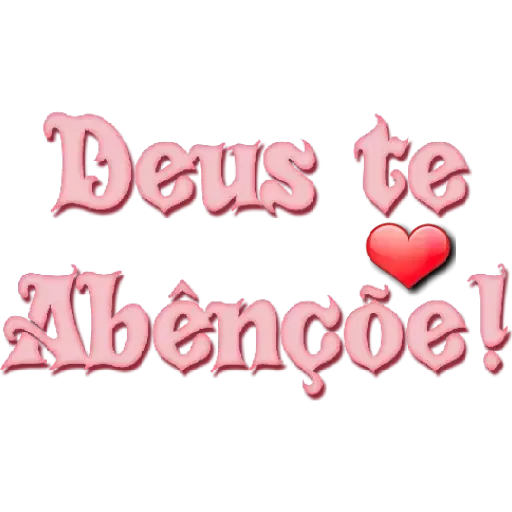 Un corazón rojo y las palabras 'Deus te abençõe!' en letras rosadas estilo gótico.