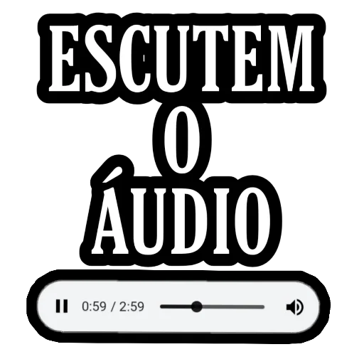 Una figurita con el texto 'ESCUTEM O ÁUDIO' en letras grandes y un reproductor de audio abajo.