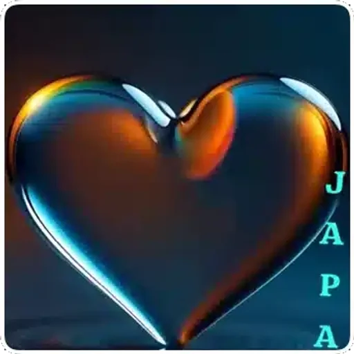 Un corazón brillante con tonos de azul, naranja y amarillo, con la palabra 'JAPA' escrita verticalmente a la derecha.