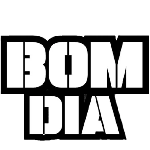 Un sticker con el texto 'BOM DIA' en letras grandes y negras.