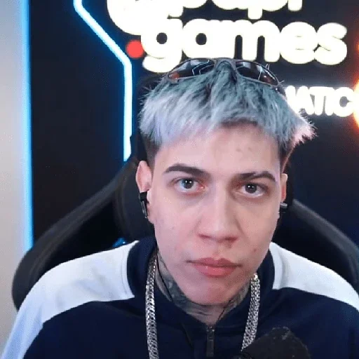 Um homem com headphones e uma expressão facial neutra, parecendo estar em frente a uma câmera.