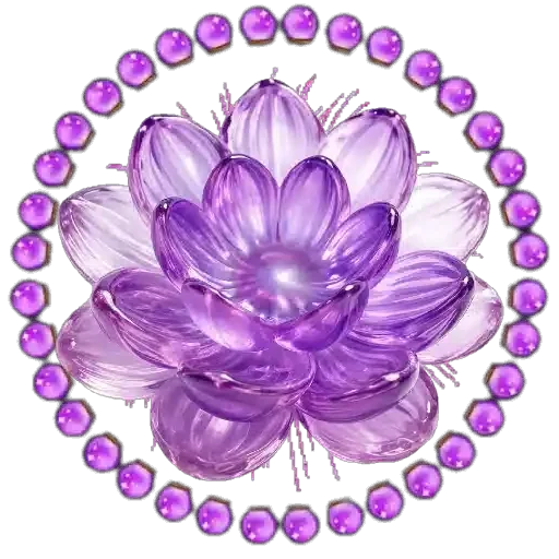 Una flor morada con pétalas brillantes rodeada de una corona de joyas moradas.