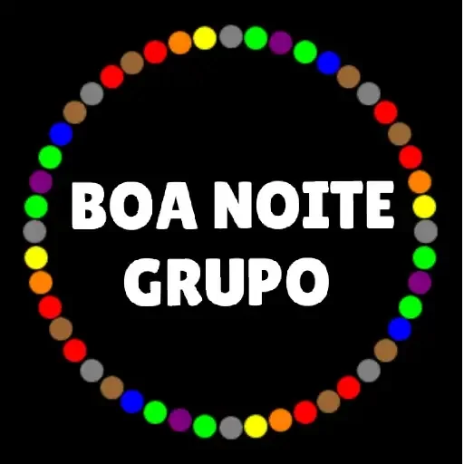 Un círculo de puntos de colores con el texto 'BOA NOITE GRUPO' en blanco en el centro.