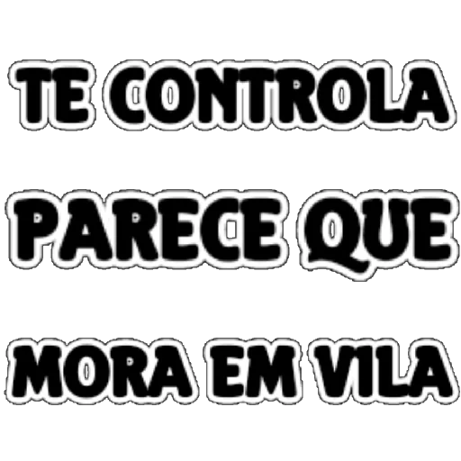 Un texto en negro con contorno blanco que dice 'TE CONTROLA PARECE QUE MORA EM VILA'.