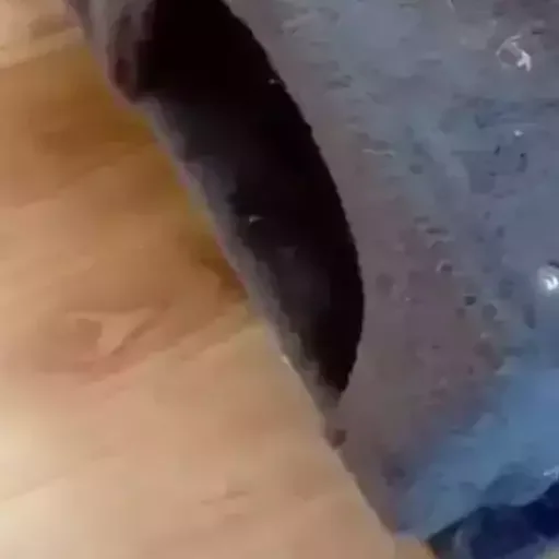 Uma sala com piso cinza e paredes brancas. Há uma porta ou painel na parede com um objeto ao lado.